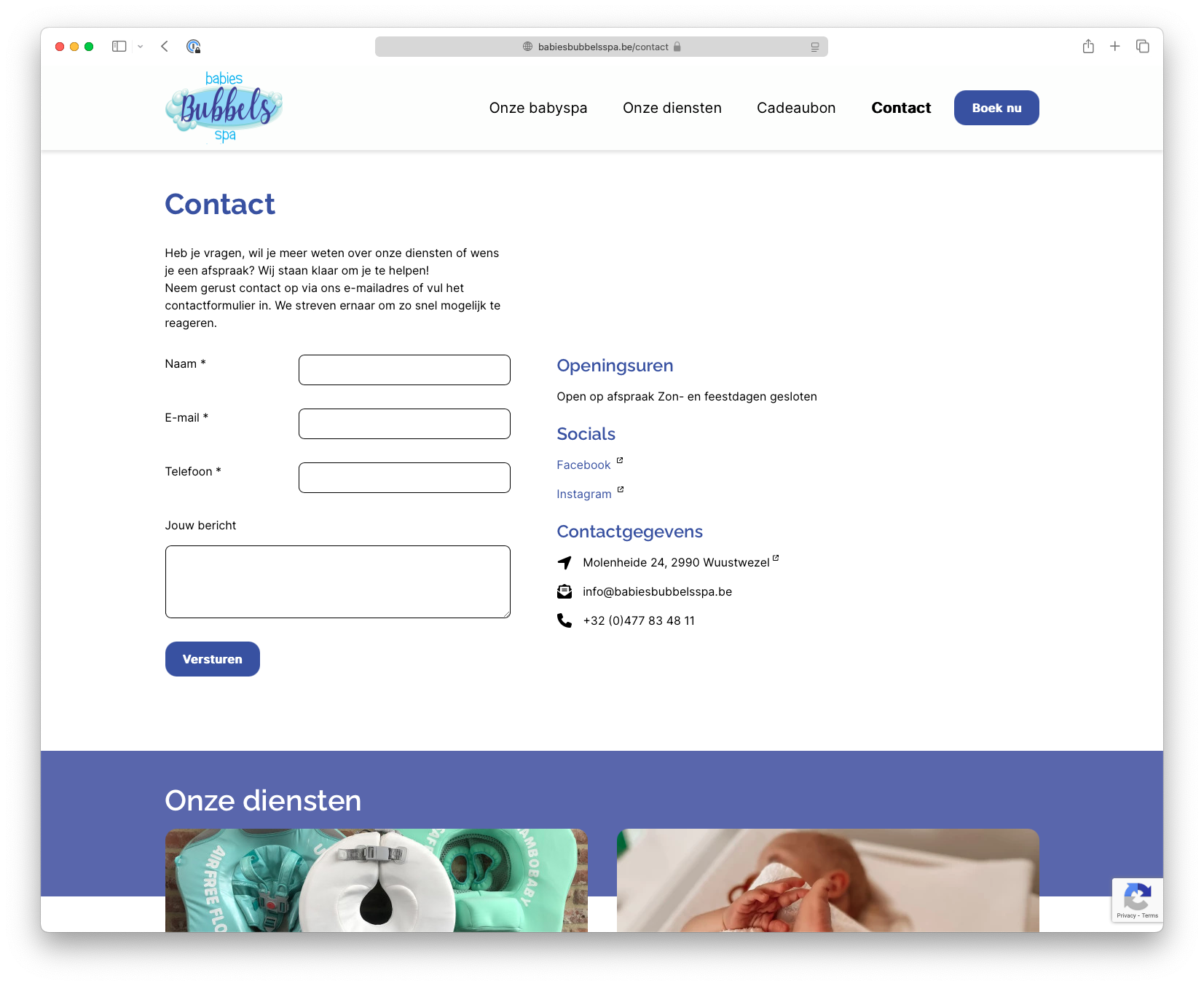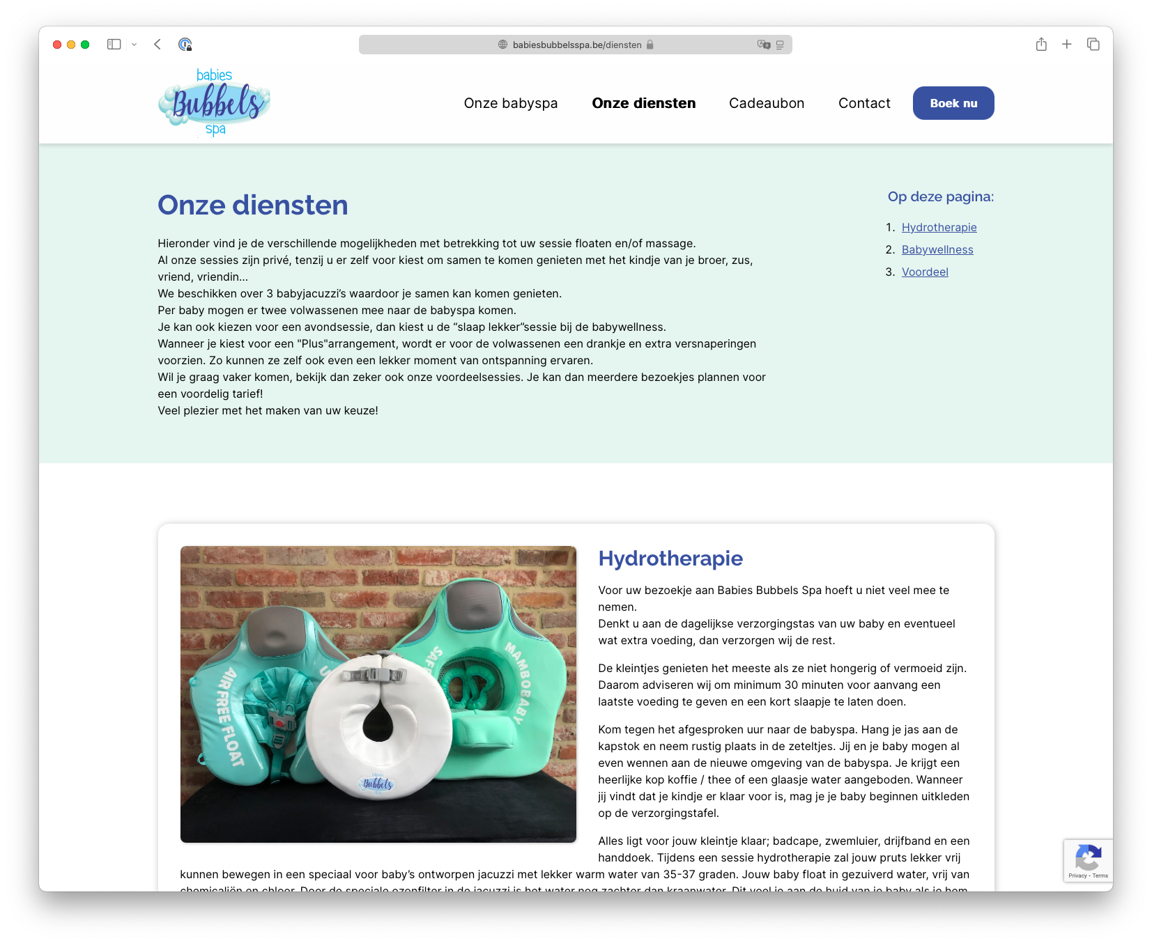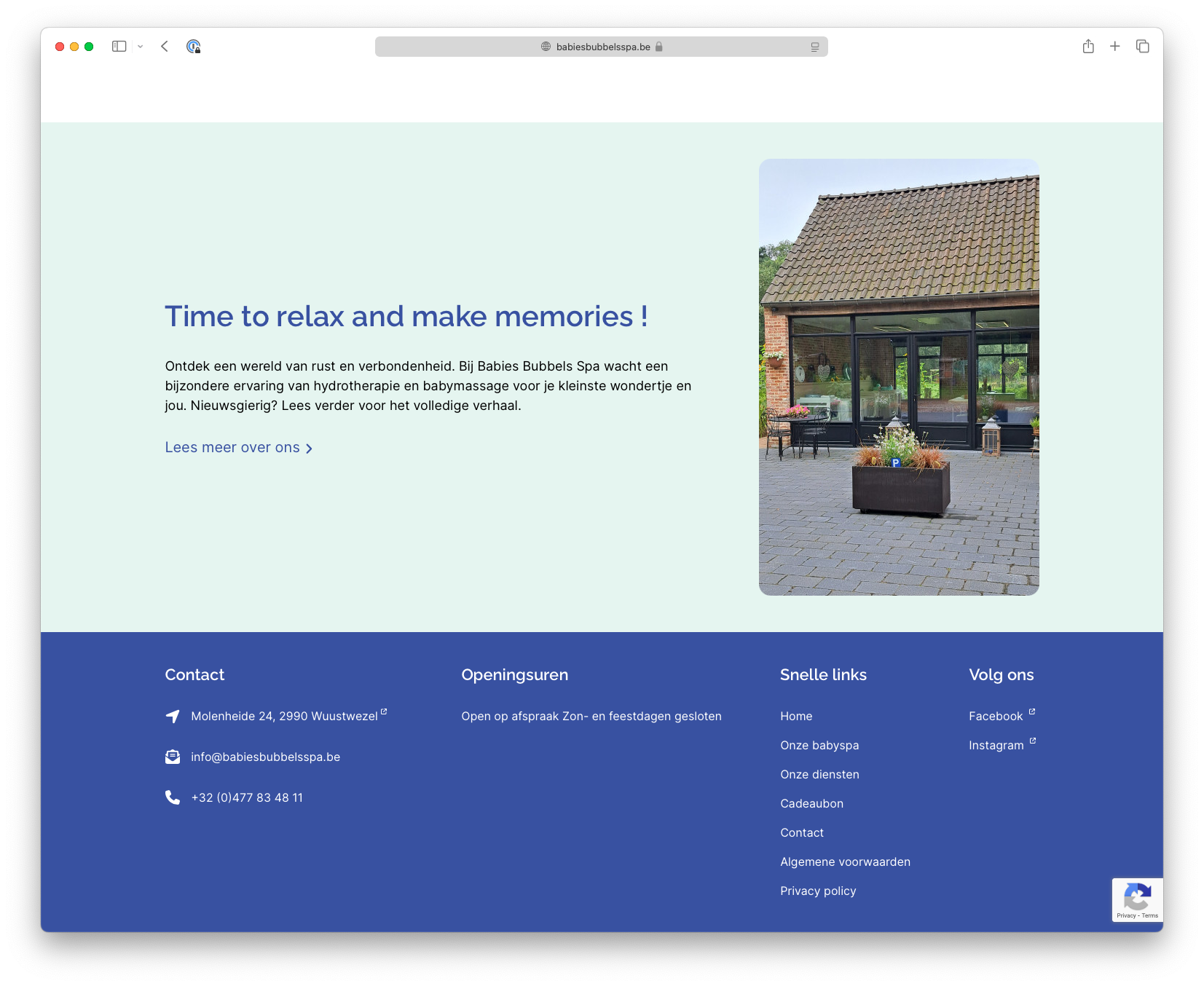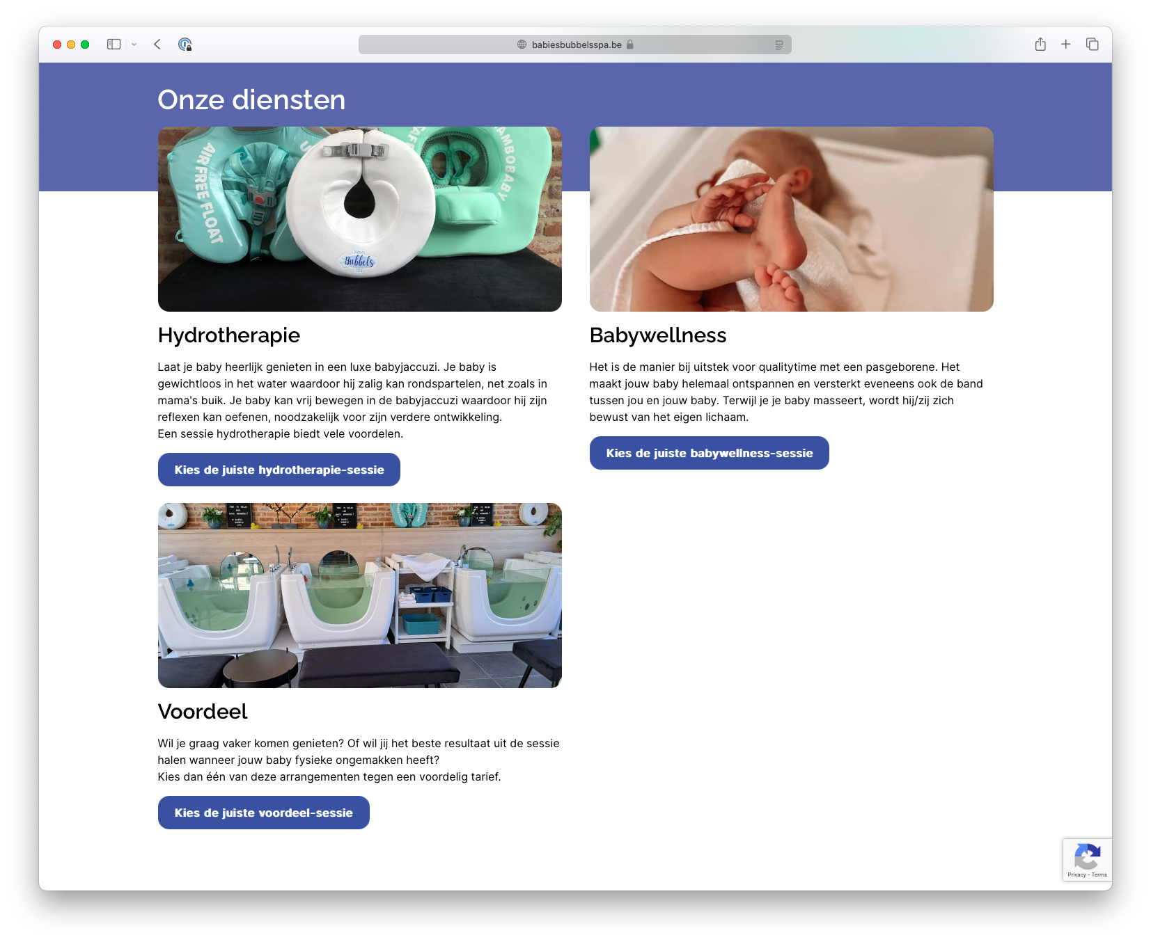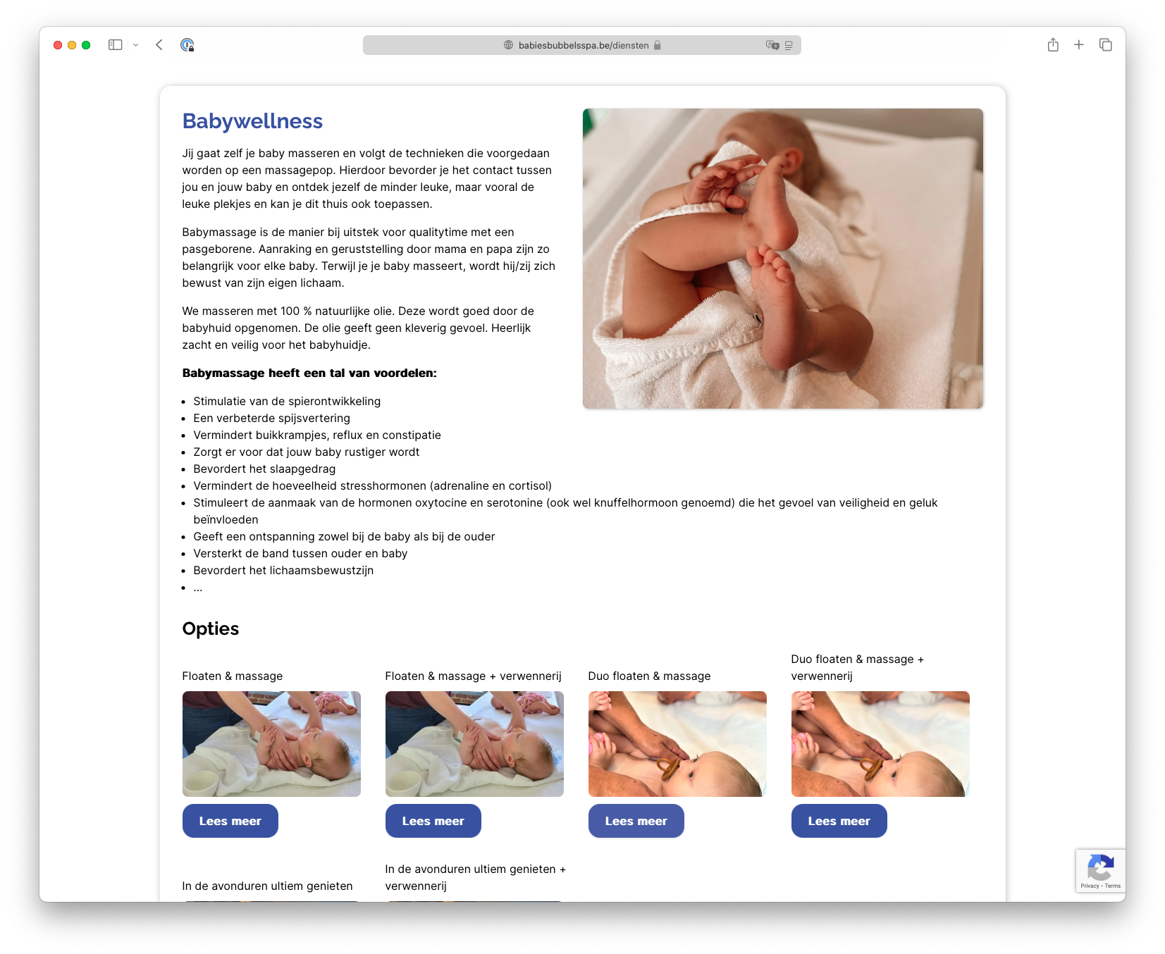 For the cozy Babies Bubbels Spa in Wuustwezel, I created a budget-friendly website. The problem was clear: the existing website came with sky-high monthly and yearly costs, a challenge I often see with small businesses that have simple needs.