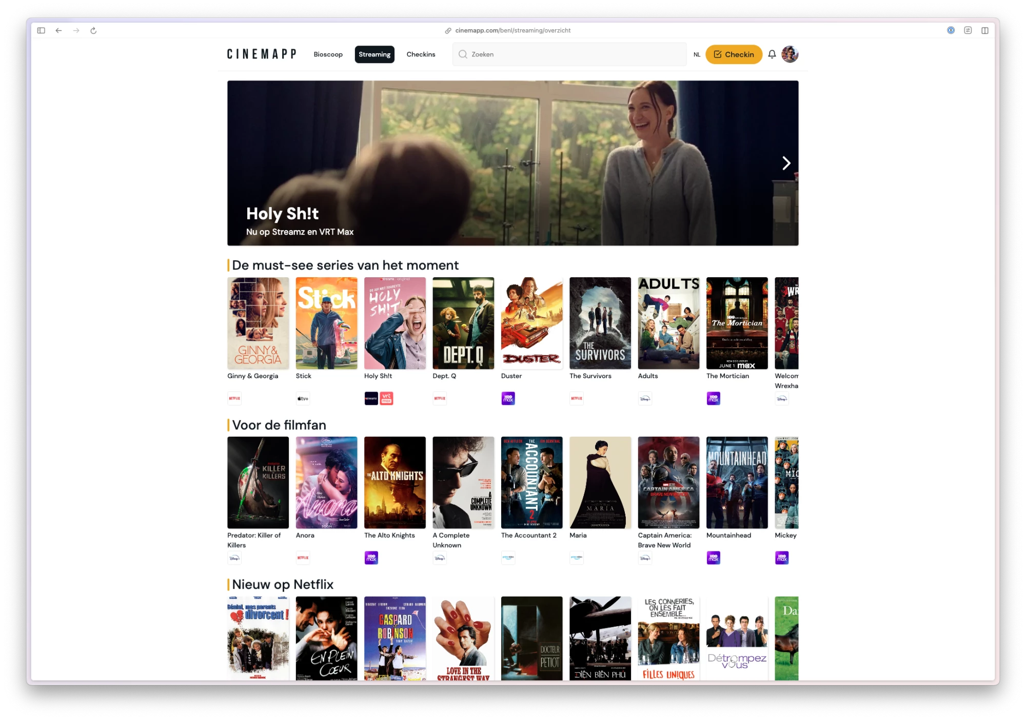 Sinds 2024 ben ik de contentverantwoordelijke voor Cinemapp, met als hoofdtaak het opvolgen van alle content op streamingdiensten die actief zijn in België.