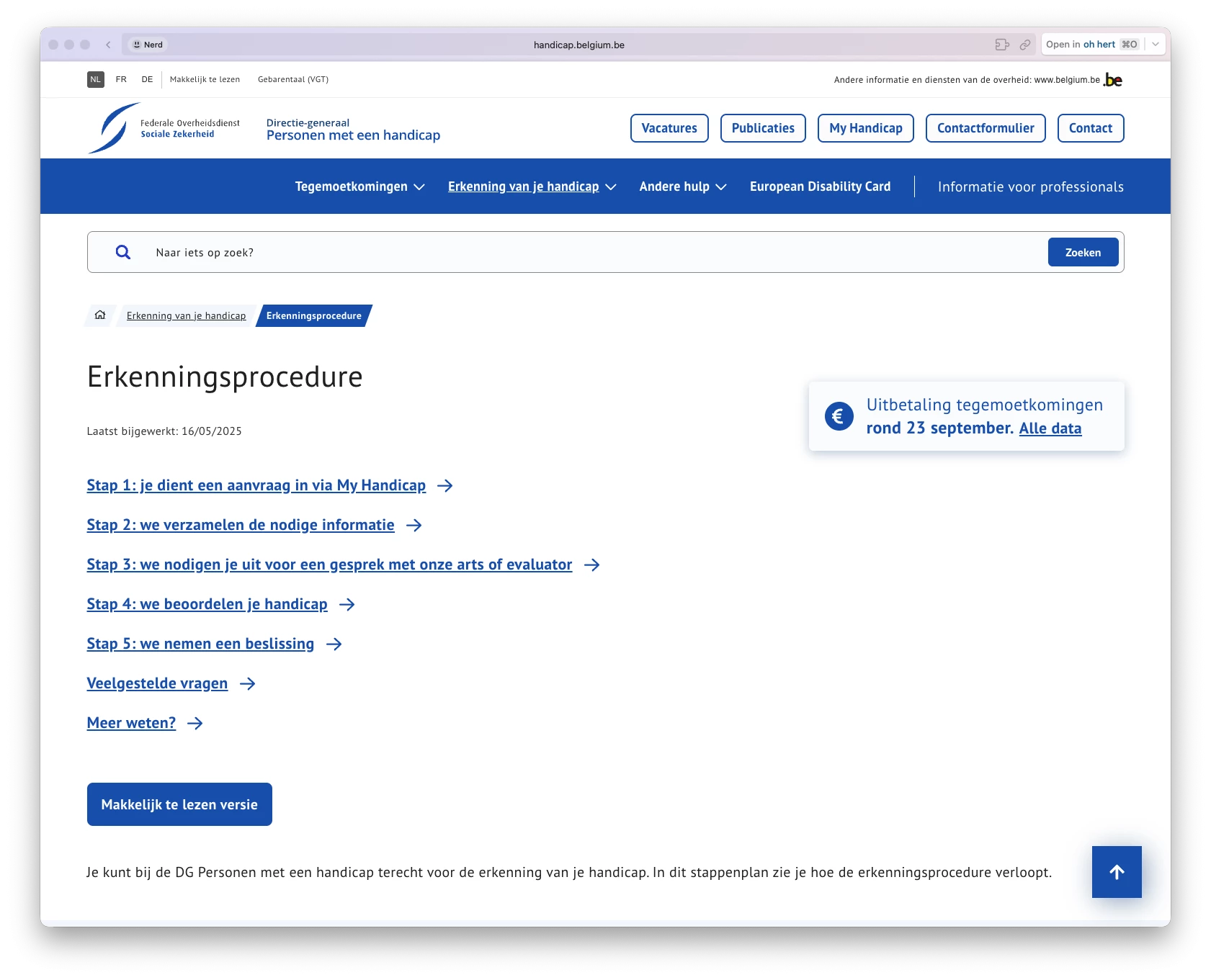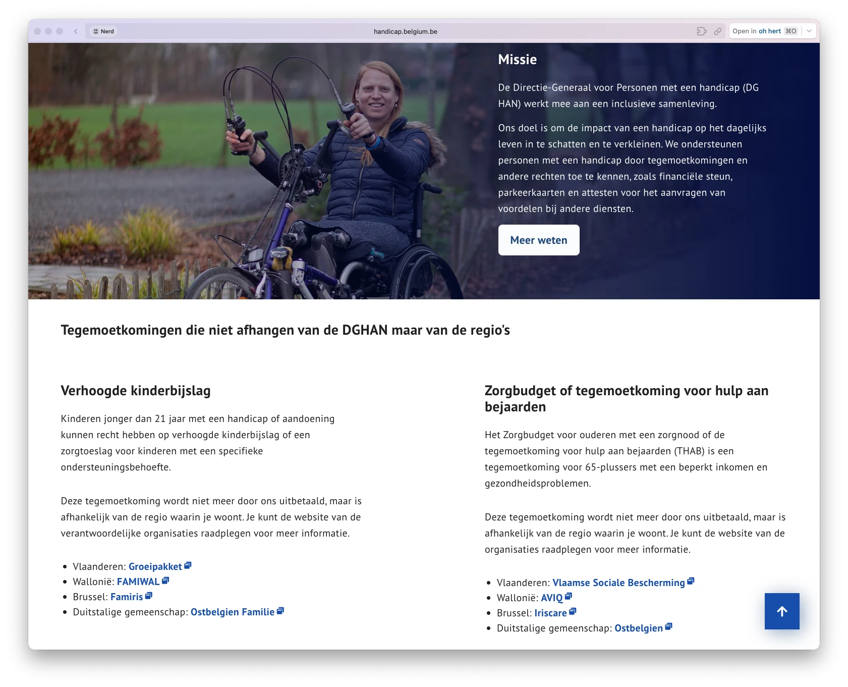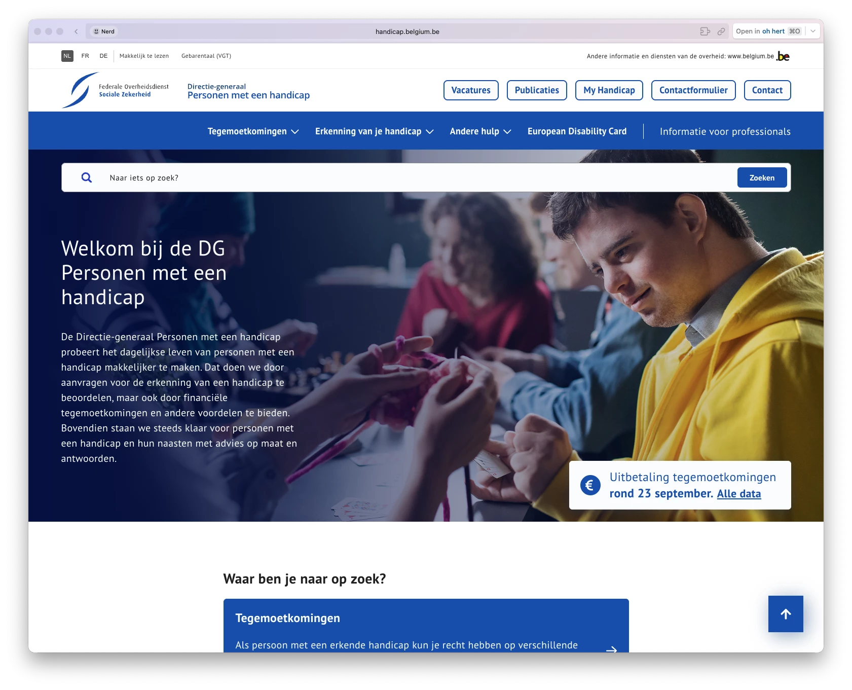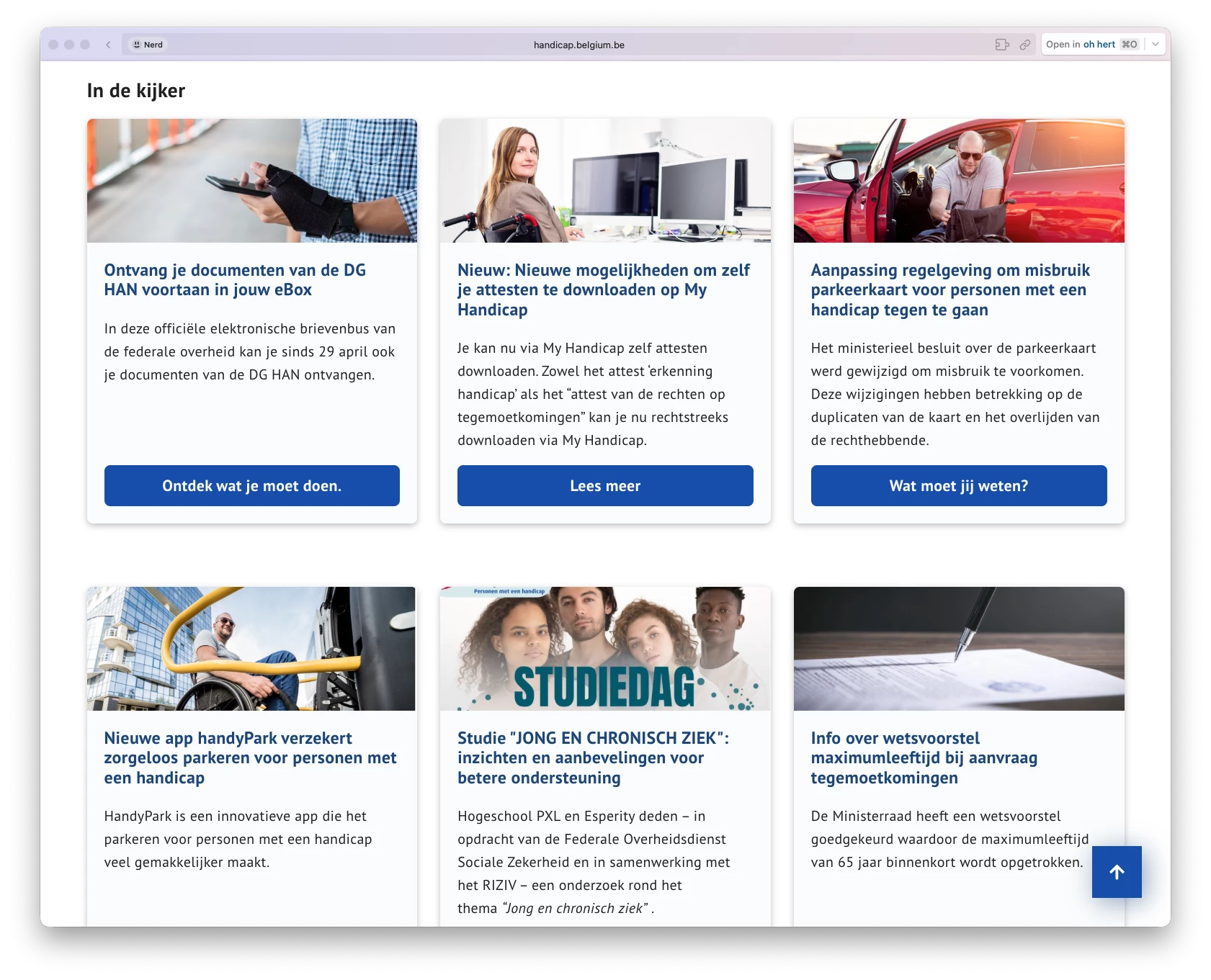 Voor Handicap België verzorgde ik de frontend van hun nieuwe website. Ja, voor zo'n website is het echt wel oké om imposter syndroom te hebben. Dit is dé website in België waar toegankelijkheid meer dan ooit belangrijk is.